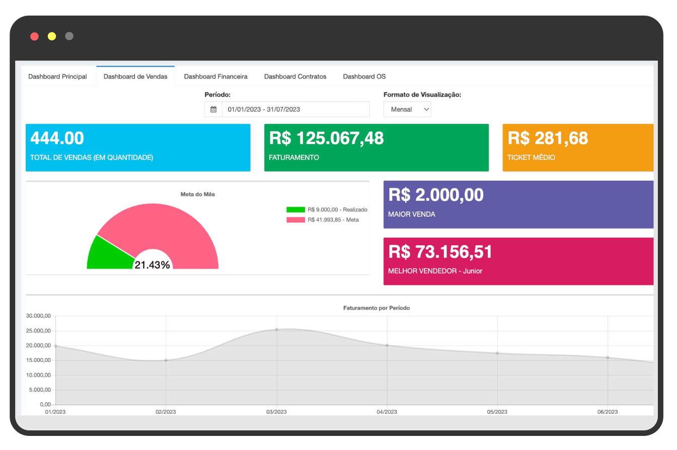 Acompanhe através das dashboards o crescimento do seu negócio.